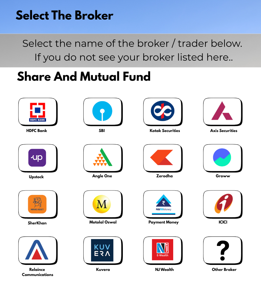 Import your broker’s Capital Gains statement for the system to auto-read all details and prepare the tax filing form.